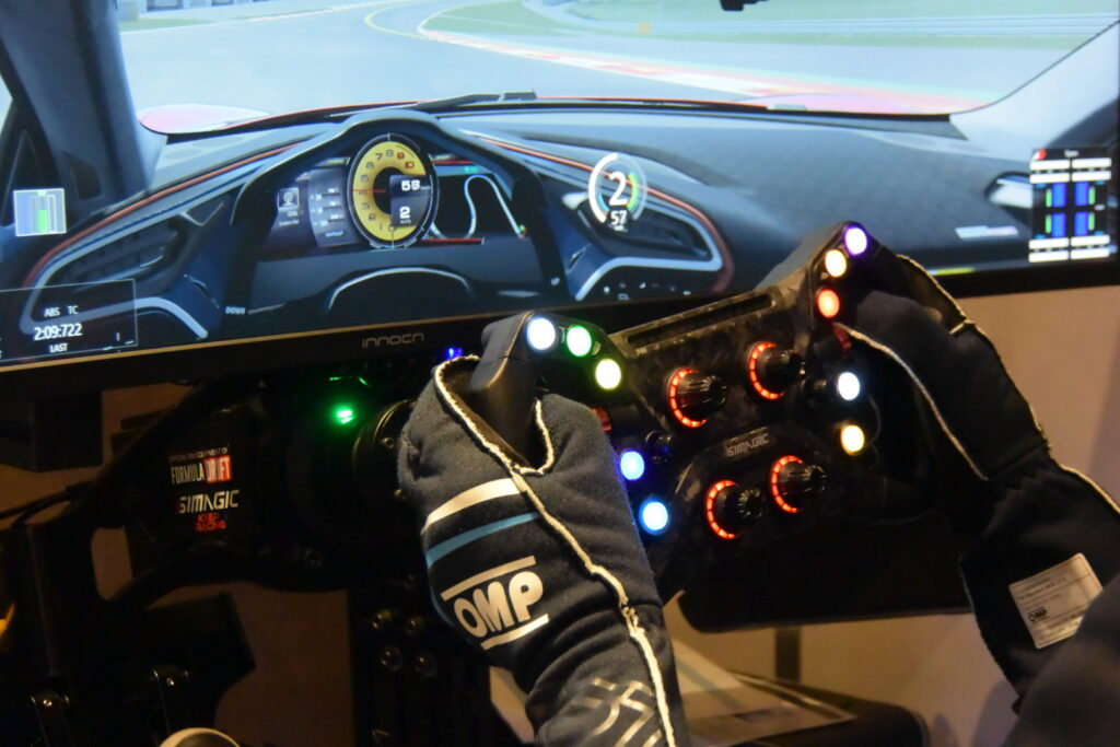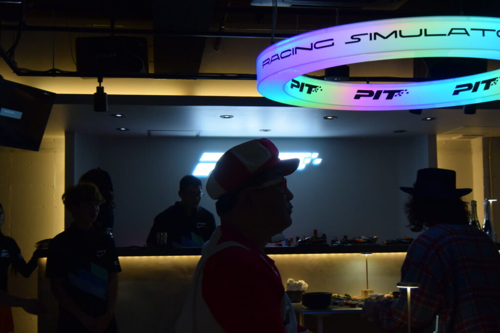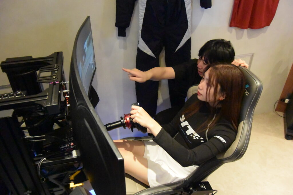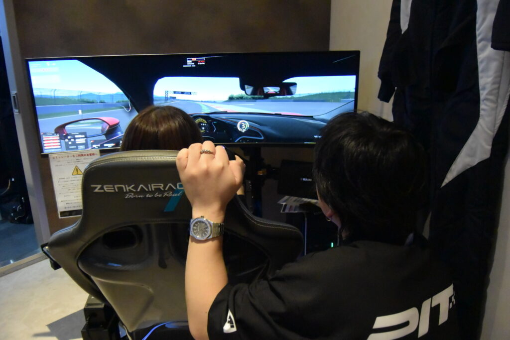 メインフロアの横には、なんだか怪しげな個室が…と思いきや、レーシングシミュレーター&カラオケルームが併設されています。そのレーシングシミュレーターも超本格的。日本を代表する「シムビルダー」であるZENKAIRACING(ゼンカイレーシング)のシミュレーターが導入されています。