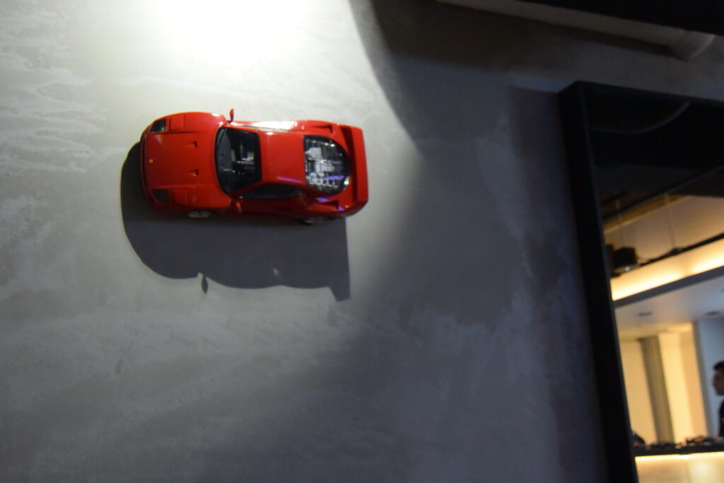 店内には、店舗オーナーの皆さんこだわりのミニカーやグッズが並んでいますが、一際目立っているのが「フェラーリ」関連のグッズたち。実はこのPIT BAR、フェラーリオーナーの方が運営・経営されているんです。東京都内で車で集る場所、また車を中心としたコミュニティでも“車抜きで楽しめる場所”という場所があったらいいな…という思いから出店に至ったということで、クルマ好きにはたまらない“レアグッズ”などもちらほら…