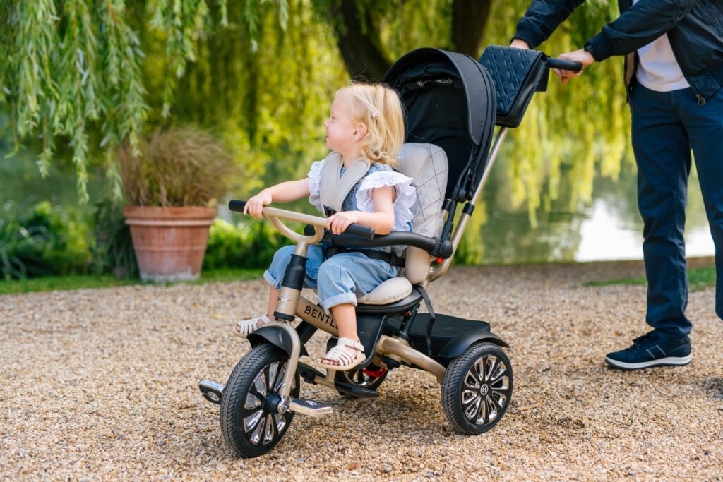 この3輪タイプのベビーカー、通称「ストローラー」とも言われますが、この名前は英語圏でのベビーカーと同義。お子さんの成長に応じて三輪車にも変形させることができ、ベビーカー期のみならず長く使える商品です。英国ブランドのコート、スーツ、アパレルからアクセサリーまでも、長く使えることが良い点ですよね。