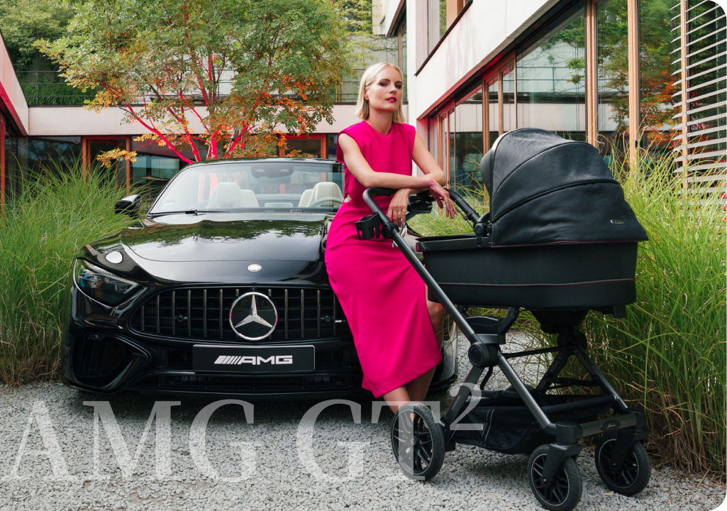 単なるコラボレートではなく、しっかりとプロダクトとして作り込むことに重きを置いて開発されたこのベビーカーは、自動車と同じように「AMG GT²」というモデル名が与えられ、メルセデス・ベビーの限定モデルとしてラインナップされています。安定感や走行性、操作の確実さといった部分に重きが置かれているのはもちろんのこと、ドイツの厳しい品質審査をクリアし、実証済みの安全性と人間工学に基づいた機能が赤ちゃんをしっかりサポート。「安全性を最優先するメルセデスらしさ」も感じられます。